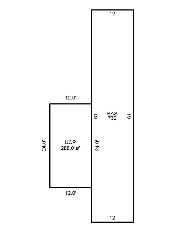 - Unfin Open Porch(UOP) = 288 sq.ft.