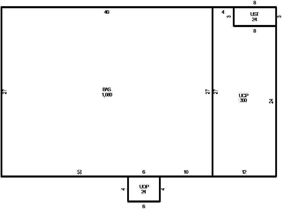 - Unfinished Carport(UCP) = 300 sq.ft.